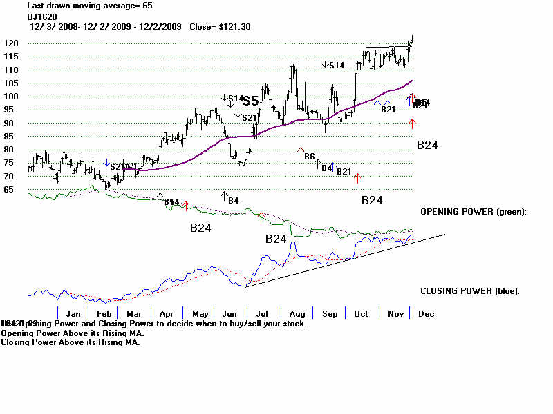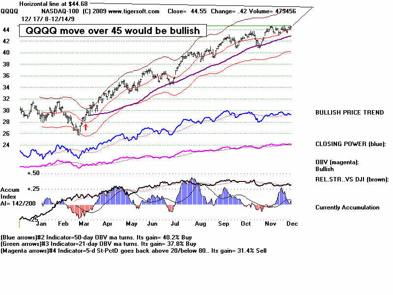 8) Relative Strength - QQQQ/DJI rising is bullish. Compare QQQQ Chart now, on this